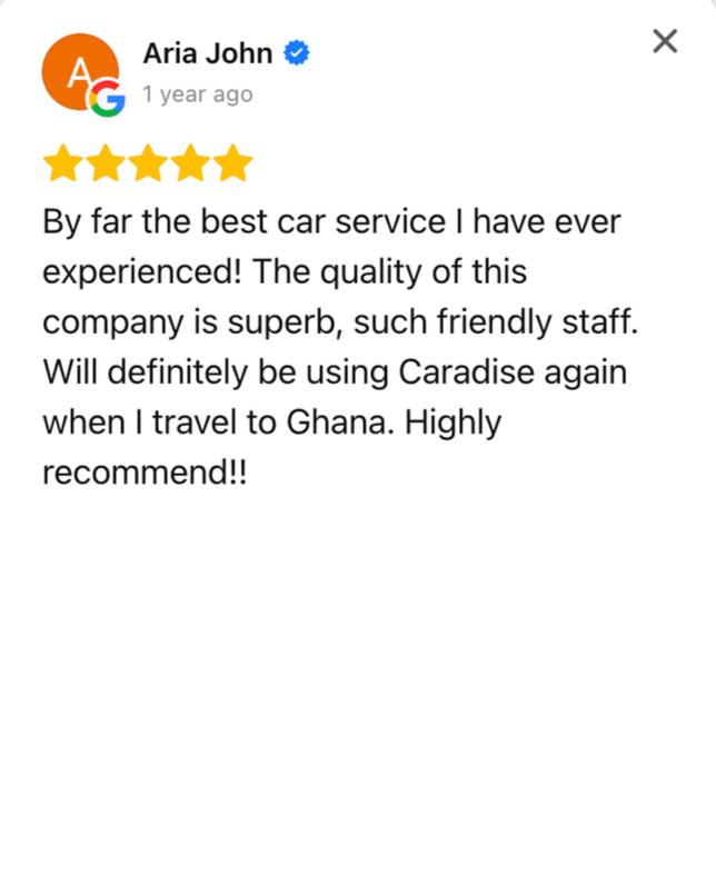 Call or WhatsApp +233 24 608 6365, email rentacar@caradiseghana.com, or fill out our quote request form. Once pricing and availability are confirmed, we’ll provide payment options to secure your booking.